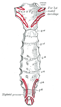 Prsna kost (lat. sternum) plosnata je kost u obliku mača. Sastoji se od tri dijela: