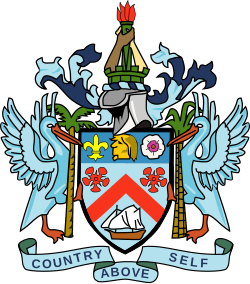 U podnožju je geslo Svetog Kristofora i Nevisa, "Country above self".