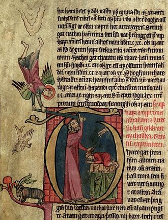 U 22. poglavlju Knjige Postanka Bog nalaže Abrahamu da žrtvuje Izaka, jedinca kojega je dobio pod stare dane, po Božjem obećanju, jedino dijete njegova roda koje bi mu moglo osigurati željeno potomstvo. Na kraju Bog zamijeni Izaka ovnom, a cijela pripovijest služi kako bi se opisala Abrahamova vjera u Boga.