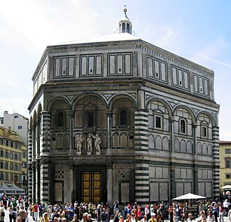Ispred katedrale nalazi se krstionica koje ima korijene još u ranokršćanskom 5. stoljeću, ali u današnjem obliku je izgrađena u Romanici (11.-12. stoljeće). Eksterijer oktogonalne građevine prekriven je, tipično romaničkim, inkrustracijama zelenog i bijelog mramora. Kupola je utvrđena i učvršćena gornjom galerijom iz 13. stoljeća. Unutrašnjost osmerokutne građevine ima toskanske geometrijske ukrase u višebojnom mramoru na dva nivoa; donji s korintskim stupovima i gornji s uskom galerijom s arkadama. Posvećena sv. Ivanu Krstitelju služila je kao Firentinska katedrala sve do 1128. godine.