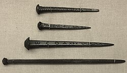 Rimski brončani čavli sa znakovima i natpisima (od 3. do 4. stoljeća).