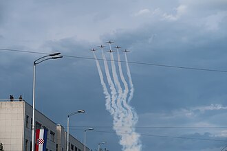 - ↑ VIDEO Zagrebom prošao golem vojni mimohod, letjeli Rafalei. Na kraju pirotehnički šou index.hr vijesti.hrt.hr Preuzeto 31. srpnja 2025.