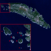 Na zapadnoj strani otoka, u blizini Maslinice, nalazi se sedam otočića: Balkun, Rudula, Grmej, Stipanska, Saskinja, Polebrnjak i hrid Kamičić.