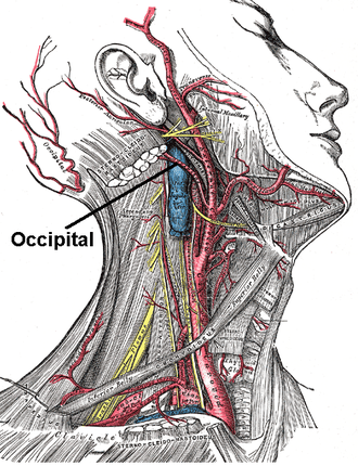 Arterija zatiljka polazi sa stražnje strane karotide i završava brojnim sitnim ograncima na verteksu lubanje koji anastomoziraju sa stražnjom arterijom uške (lat. arteria auricularis posterior) i površnom sljepoočnom arterijom (lat. arteria temporalis superficialis).