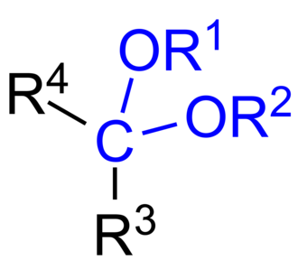 Nastaju adicijom alkohola na aldehide. Pojam se prvo odnosio na spojeve izvedene iz aldehida (jedan R = H). Značenje pojma poslije je prošireno radi obuhvaćanja spojeva koji su izvedeni iz ketona (nijedan R = H ).[1]
