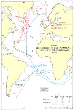 U razdoblju od rujna do prosinca 1939. godine Admiral Graf von Spee je potopio devet trgovačkih brodova u Južnom Atlantiku i Indijskom oceanu. Kapetan broda strogo se pridržavao međunarodnih pomorskih pravila o trgovačkom ratu, tako da su svi ovi brodovi potopljeni bez ijedne ljudske žrtve. Članovi posada ovih brodova prebačeni su na njemački tanker Altmark. Kasnije su zarobljeni članovi posade, njih 299, oslobođeni u teritorijalnim vodama neutralne Norveške od strane britanskog razarača HMS Cossack (tzv. Altmark incident).