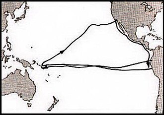 Na prvo putovanje krenuo je 1567. godine dvama brodovima iz Callaa[2] (luke grada Lime) u Peruu i na tom je putovanju otkrio otočje Ellice i 1568. godine otočje Solomon.[1] Tu se zadržao 6 mjeseci tražeći zlato i bisere, "ali su našli samo podmukle ljudoždere".[2] Potom je nastavio do Maršalovih otoka, plovio na istok preko Tihog oceana i stigao do 30° sjeverne širine, dodirnuo obalu Kalifornije i zatim otplovio uz obalu natrag do Lime.[2]