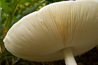 - Listići su gusti, pomiješani s mnogo lamelula, bijeli s malim dlačicama i zalijepljeni uz poneki ostatak rukavca (Velum partiale).
