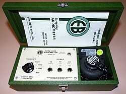 Audiometar je mjerni instrument ili uređaj za ispitivanje osjeta sluha. Rukovanje uređajem zahtijeva poznavanje ispitnoga postupka. [3]