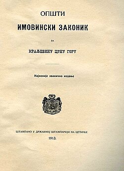 Njegovim najvećim djelom svakako možemo smatrati Opšti imovinski zakonik Knjaževine Crne Gore koji je Bogišić pripremio na poziv kneza Nikole I. Petrovića. Bogišić se budući je bio upoznat s crnogorskim običajnim pravom, 1873. godine prihvatio izrade modernog građanskog zakonika za Crnu Goru, sve uz suglasnost ruskog cara Aleksandra II. Knez Nikola je Zakonik proglasio 1888. godine, a Bogišića je 1893. godine postavio za ministra pravosuđa, koji je položaj Bogišić držao do 1899. godine. U tom su periodu i priređene neke izmjene Zakonika. U osnovi utemeljen na patrijahalnom nasljeđu, kombiniran s tada najsuvremenijim pravnim standardima, Zakonik je predstavljao korak naprijed u crnogorskom društvu, a u suvremenoj je znanosti Bogišić za njega dobio mnoge pohvale.