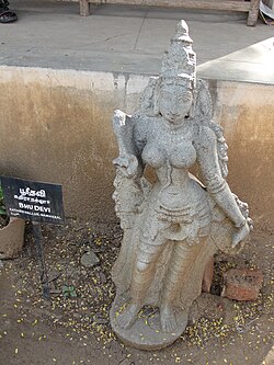 Bhūmi se često prikazuje s četiri ruke, kako drži mogranj.