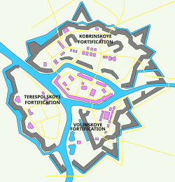Izgradnja tvrđave počela je 1833. godine, po planu inženjera Dolovana (još iz 1799. godine), a razradili su ga inženjeri K. I. Operman, Maleckij i Feldman. Na mjestu gdje se trebala izgraditi tvrđava, nalazili su se zemljani bunkeri. Izgradnja tvrđave počela je 1. lipnja 1836. godine. Osnovni dijelovi tvrđave bili su završeni 26. travnja 1842. godine. Tvrđava se sastojala od jednog velikog središnjeg utvrđenja - citadele i tri manja utvrđenja čija je površina iznosila 4 kvadratna kilometra. Od 1864. do 1888. tvrđava je modernizirana po nacrtu Eduarda Ivanoviča Totlebena. Opasana je bedemima u krugu od 32 km, a 1876. godine u okviru tvrđave izgrađen je i hram sv. Nikole. Godine 1913. počeli su radovi na proširenju tvrđave, ali su prekinuti zbog izbijanja Prvog svjetskog rata.