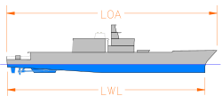 - dužina preko svega - dužina mjerena između dviju krajnih nepokretnih točaka broda