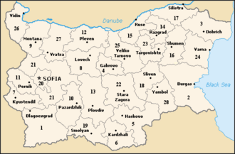 Sadašnje (2009.) oblasti Bugarske su: Blagoevgrad, Burgas, Ćustendil, Dobrič, Gabrovo, Haskovo, Jambol, Krdžali, Loveč, Montana, Pazardžik, Pernik, Pleven, Plovdiv, Razgrad, Ruse, Šumen, Silistra, Sliven, Smoljan, Sofijska oblast, Sofija, Stara Zagora, Trgovište, Varna, Veliko Trnovo, Vidin, Vraca