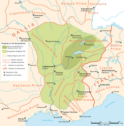 Burgundi, očigledno suočeni sa rastom moći, pregovaraju 456. o teritorijalnom proširenju i sklapaju ugovor o podjeli moći s lokalnim rimskim senatorima . [12]