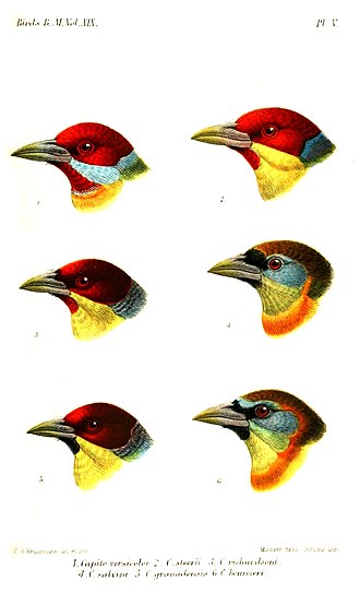 2. LL Short, JFM Horne (2002) Family Capitonidae (barbets). in del Hoyo J., Elliott A. & Christie D.A. (2004) Handbook of the Birds of the World. Volume 7. Jamacars to Woodpeckers Lynx Edicions, Barcelona ISBN 84-87334-37-7
