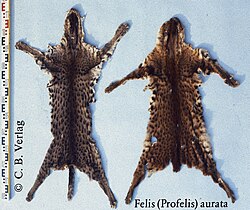| Felis aurata Temminck, 1827 Profelis aurata (Temminck, 1827 ) | |