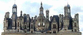 Ranije obrambene kule otvorene su velikim četvrtastim prozorima, a gusta koncentracija mnogih krovova, dimnjaka i malih kula na velikoj terasi stvaraju neku vrstu "ulice" na terasi. Tim elementima arhitektura Chamborda može se smatrati svojevrsnim manirizmom koji potječe iz prevage kasne gotike nad renesansom.