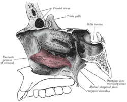 - stražnji dio je spojen sa crista conchalis (lat.) nepčane kosti.