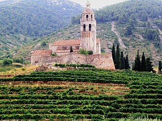 Nekadašnji benediktinski samostan sa crkvom sv. Nikole i romaničkim fortifikacijama izgrađen je u 13.st. iznad Komiže, na brežuljku koji dominira komiškim zaljevom. U 16. i 17. st. crkva je dograđena i barokizirana, a cijeli je sklop utvrđen bastionom. U interijeru peterobrodne crkve nastale povezivanjem bočnih kapela ističu se drveni i mramorni oltari, a posebice su očuvane nadgrobne ploče. Kasnobarokni zvonik koji nadvisuje glavno pročelje sagrađen je na romaničkoj kuli. Crkva je građena fino obrađenim bijelim klesancima, dok je barokna utvrda iz pravilnih klesanih blokova crvenkastog konglomerata – breče.