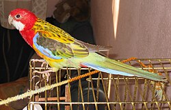 Crvena rozela je pitoma, ali vrlo nepovjerljiva, moguće ju je naučiti i da govori ako je riječ o mladoj ptici. Oglašavaju se relativno nježnim tonovima i zvižducima.