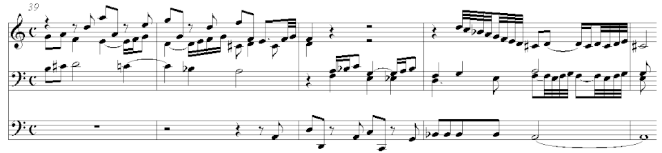 Fugalna procedura raspada se pri kraju fuge kada joj se dopušta slobodna sekcija, kao u primjeru 4: