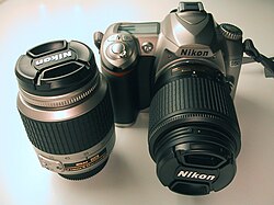 Novi CCD čipovi su manje osjetljivi na koso padanje svjetlosti na rubovima slike, pa današnje SLR digitalne kamere mogu koristiti i izmjenjive objektive s klasičnih aparata. Kako su dimenzije CCD Čipa daleko manje nego korisni prostor 35 milimetarskog filma, slika uhvaćena na CCD čip sadrži samo sredinu one slike koju bi uhvatio film s istim objektivom. Drugim riječima, normalan objektiv za 35 milimetarski film, postaje teleobjektiv ako se priključi na digitalnu kameru. Zbog toga iste žarišne dužine objektiva na klasičnom i digitalnom aparatu daju vrlo različit teleskopski učinak. Da bi se ovi učinci mogli uspoređivati s uvriježenim žarišnim dužinama kod klasičnih aparata, za digitalne objektive se navodi faktor s kojim treba množiti žarišnu duljinu, da bi se dobila adekvatna žarišna duljina pri uporabi klasičnog 35 milimetarskog aparata. Taj se faktor kreće između 1,4 i 1,8, a poželjno je da bude što manji.