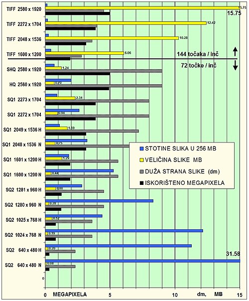 - veličina kreirane slike - na grafikonu je dana duža stranica formata u dm (reckasto)