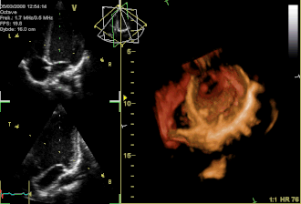 Ehokardiografija je skupina neinvazivnih pretraga srca ultrazvukom. Temelji se na registraciji ultrazvučnih valova što ih reflektiraju srčane strukture. Ehokardiografija je dominantna metoda kardiološkog pregleda koja, pouzdanim podatcima, najčešće otklanja potrebu za invazivnim pretragama srca. Daje ključne podatke za dijagnozu: funkcijske parametre, točne mjere srčanih šupljina i debljine stijenki, oblik srčanih struktura, vrijednosti intrakardijalnih tlakova, procjenu težine bolesti srčanih zalistaka i drugo. Jednodimenzijska ehokardiografija (M-prikaz, od eng. motion: kretanje) prikazuje gibanje srčanih struktura s pomoću jednoga piezoelektričnoga kristala i daje najbolji vremenski prikaz zbivanja u srcu. Dvodimenzijska ehokardiografija daje slojevne slike srčanih struktura u "živoj slici" s dobrom prostornom orijentacijom. Dopplerova ehokardiografija primjenjuje se osobito u dijagnostici prirođenih i stečenih bolesti srca. [1]