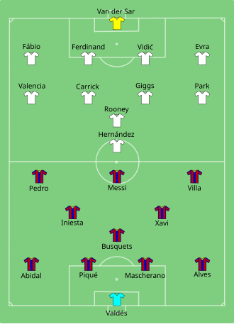 Barcelona je dominirala u susretu, i tako pobijedila razultatom od 3:1, pogocima Pedra Rodrígueza, Lionela Messija i Davida Ville, osvojivši svoj četvrti naslov.[7] Wayne Rooney je postigao jedini pogodak za Manchester United, koji je izjednačio susret prije poluvremena.[8]
