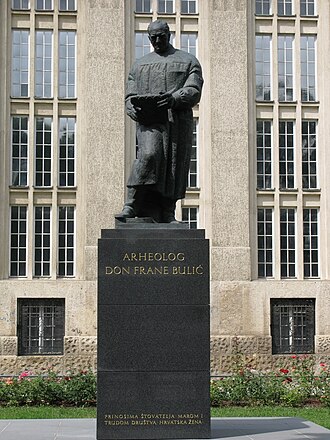 Don Frane Bulić, ugledni hrvatski arheolog, povjesničar, konzervator starina i povjesničar umjetnosti, rođen je 4. listopada 1846. godine u Vranjicu kraj Splita. Studij teologije polazio je u Zadru. Nakon završene teologije i svećeničkog ređenja 1869. završio je na bečkom sveučilištu studij klasične filologije i arheologije. Kao školovani arheolog postao je upraviteljem arheološkog muzeja u Splitu, a 1878. povjerena mu je i dužnost konzervatora nadležnog za očuvanje kulturno-povijesnih starina na području cijele Dalmacije.