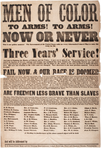 Douglass i abolicionisti tvrdili su da bi afroamerikancima, budući da je cilj građanskog rata bio zaustaviti ropstvo, trebalo omogućiti da se uključe u borbu za svoju slobodu. Douglass je to mišljenje objavio u svojim novinama i nekoliko govora. U kolovozu 1861. objavio je opis Prve bitke kod Bull Runa, napominjući da su neki crnci već bili u redovima Konfederacije. Nekoliko tjedana kasnije, Douglass je ponovno spomenuo sudjelovanje crnaca u borbi za njihovu slobodu, citirajući svjedoka bitke koji je rekao da su vidjeli crne konfederate "s mušketama na ramenima i mecima u džepovima". [85] Douglass je 1863. razgovarao s predsjednikom Abrahamom Lincolnom o postupanju s afroameričkim vojnicima [86] i s predsjednikom Andrewom Johnsonom na temu crnog biračkog prava . [87]