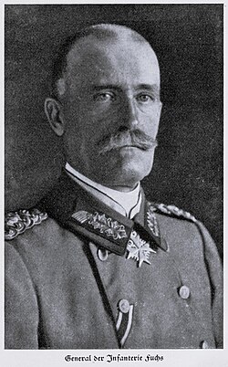 Na početku Prvog svjetskog rata 16. pješačka divizija nalazila se u sastavu 4. armije kojom je zapovijedao Albrecht od Württemberga. Zapovijedajući navedenom divizijom Fuchs sudjeluje u okupaciji Luksemburga.