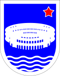 Nakon Drugog svjetskog rata Pula je prestala koristiti svoj povijesni grb s križem, a umjesto njega koristio se grb sa štitom plave boje na kojem se nalazio prikaz Arene u bijeloj boji. Ispod Arene, pri dnu grba, nalazile su se četiri valovite pruge bijele boje. U gornjem lijevom uglu, gledano heraldički, bila je prikazana petokraka zvijezda crvene boje.