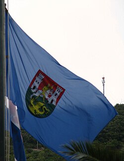 Grb se nalazi u sredini zastave Grada Visa. Zastava je omjera 1:2 i plave je boje.