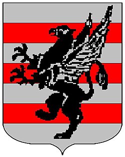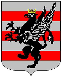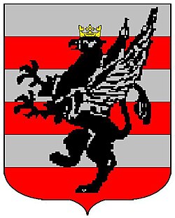 - (HR) Tri para vodoravnih greda srebreno-crvene. Preko svega crni grifon okrunjen zlatnom krunom. [7/56]