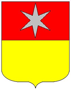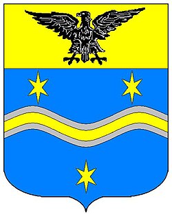 - (HR) Plavo polje podijeljeno zlatnim valom koji ima srebreni okvir, iznad vala dvije šesterokrake zlatne zvijezde 2, ispod vala jedna šesterokraka zlatna zvijezda. Kapa: na zlatnom polju crni orao (capo di Impero). [3]