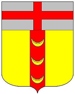 - (HR) Zlatno polje podijeljeno okomitom crvenom gredom, duž grede tri ležeća zlatna polumjeseca. Kapa: srebreno polje, preko svega crveni križ . [2/84]