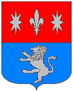 (HR) Na plavom polju srebrena ruka u srebrenom rukavu, izlazi s desna, drži zelenu stabljiku s korijenom i četiri zelena lista, na vrhu stabljike šestokraka zlatna zvijezda. [1/14, 4/5, 5/27] | |