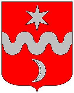 (HR) Crveno polje podijeljeno srebrenim valom, gore šestokraka srebrena zvijezda, dolje srebreni polumjesec. [1/49] | |