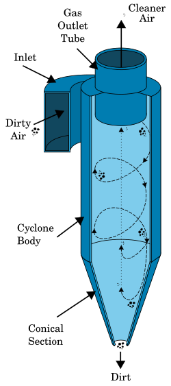 Hidrociklon je vrsta pjeskolova; uređaj koji uzrokuje centrifugalno razdvajanje materija sadržanih u tekućini kojom je napunjen. Te materije mogu biti čvrste čestice, mjehurići plina ili druge nemješljive tekućine. Hidrociklon obavlja razdvajanje čvrste materije u pogonskoj tekućini zbog razlike u veličini i obliku čvrste materije, a u slučaju dviju čvrstih materija u pogonskoj tekućini, one se mogu razdvajati i zbog razlike u gustoći. Hidrociklon je mirujuća cilindrično – konusna naprava, u kojoj se uvođenjem suspenzije pod određenim tlakom, stvara centrifugalno vrtloženje, što je glavni uzrok razdvajanja raspršene otopine u uvjetima centrifugalnog polja. Stupanj iskorištenja razdvajanja raste s povećanjem razrijeđenosti suspenzije na ulazu u hidrociklon, ali i s manjim udjelom čvrstih čestica u suspenziji. [1]