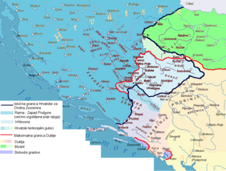 Hrvatska se država tada prostirala većim dijelom sadašnje Bosne i Slavonije. Na istoku je Hrvatska graničila sa Bugarskom i Srbijom, a na jugu sa Zahumljem, u kojem su bili i Vis, Brač i Hvar, te se Zahumlje širilo i na dalmatinske gradove. U to vrijeme je bugarski car Simeon zaprijetio samom Carigradu. Da bi se osigurao od te pogiblji, Bizant sklapa sa Tomislavom savez, a pod hrvatsku vlast dolaze svi dalmatinski otoci i gradovi. Tako je Kneževina Hrvatska dobila izlaz na more na čitavoj svojoj obali s velikim lukama.