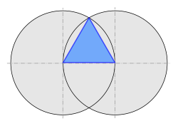 Jednakostraničan trokut se može konstruirati i na drugi način. Prvo se napravi kružnica, a zatim šestarom označimo sjecišta kružnica s istim polumjerom. Ako se spoje tri suprotna vrha, dobiva se jednakostraničan trokut.
