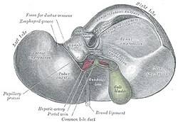 Donja strana (lat. facies visceralis hepatis) jeste konkavna i spušta se koso prema dolje i u desno i naliježe najprije na jednjak i prednju stranu želuca, a zatim na gornji dio duodenuma, na desni kut debelog crijeva, na desni bubreg i na desnu nadbubrežnu žlijezdu. Na donjoj strani jetre nalaze se tri žlijeba, jedan poprečni i dva sagitalna, koji skupa oblikuju slovo H. Poprečni žlijeb predstavlja hilus ili portu jetre (porta hepatis), kroz koji prolaze krvne žile, živci i žučni kanali. Lijevi sagitalni žlijeb je u vidu duboke pukotine, (lat. fissura sagittalis sinistra), koja u svom prednjem dijelu sadrži lig. teres hepatis, a u svom zadnjem dijelu lig. venosum. U prednji dio desnog žlijeba naliježe žučni mjehur, koja odgovara udubini (lat. fossa vesicae fallae).