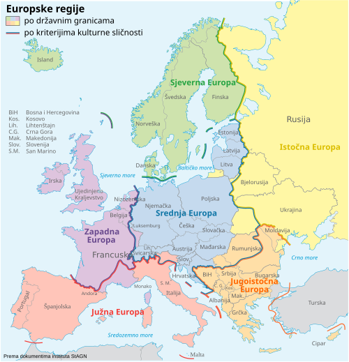 1. Peter Jordan, „Großgliederung Europas nach kulturräumlichen Kriterien“ (Arhivirano 23. srpnja 2012.) // Europa Regional 13 (2005), Heft 4, Leibniz-Institut für Länderkunde, Leipzig, 2005., str. 162. – 173.