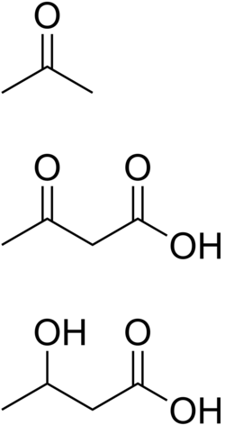 Stanje povišene vrijednosti ketonskih tijela u krvi naziva se ketoza, a povišena vrijednost ketonskih tijela u urinu naziva se ketonurija. Acetoacetat i beta-hidroksibutirat su kisele tvari te utječu na sniženje pH krvi, pa povišenje njihove koncentracije u krvi može uzrokovati ketoacidozu.