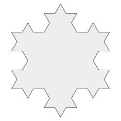 Kochova se pahuljica tvori na isti način, ali tako da se uzmu tri početne dužine i postave se tako da tvore jednakostranični trokut. Sa svakom od dužina učinimo isto što i s nultom iteracijom Kochove krivulje da bismo dobili prvu iteraciju.