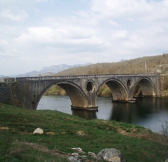 Gradnja mosta započela je 1929. a u prosincu 1936. pušten je u promet. Dužina mosta s upornjacima iznosi 70 metara, a širina između kamenih parapeta 5,5 metara.