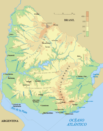 - Najviši vrh: Cerro Catedral, departman Maldonado (514 m)