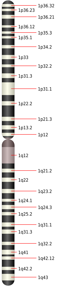 - ↑ (eng.) Geni kromosoma 1 na Genetics home reference, pristupljeno 9. srpnja 2013.